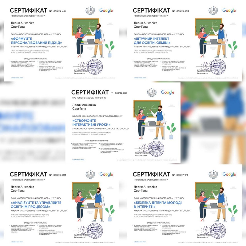 Від щирого серця висловлюємо вдячність організаторам, спікерам та усім, хто доклав своїх зусиль для створення освітньої програми для підвищення кваліфікації педагогічних та науково-педагогічних працівників «Цифрові навички для освіти з Google».