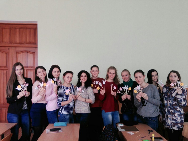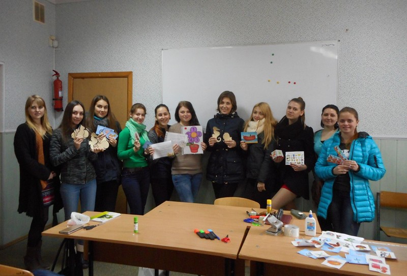 Студенти факультету дошкільної, спеціальної та соціальної освіти відомі не тільки старанністю та добрими успіхами в навчанні, а й активною участю в різноманітних видах позанавчальної діяльності університетського та факультетського рівня. Так студенти напряму «Корекційна (спеціальна) освіта» не оминули своєю увагою і майстер-класу з вироблення наочності для логопедичних занять з дітьми дошкільного віку. Під керівництвом асистентів кафедри прикладної психології та логопедії вони застосували свої творчі здібності та навички, отримані на семінарських заняттях, для перетворення паперу, картону та інших матеріалів у цікаві логопедичні ігри для дошкільників. Студенти під час майстер-класу виготовили дидактичні матеріали для вправ на дихання, розвиток дрібної моторики, артикуляційної гімнастики та для автоматизації звуків.