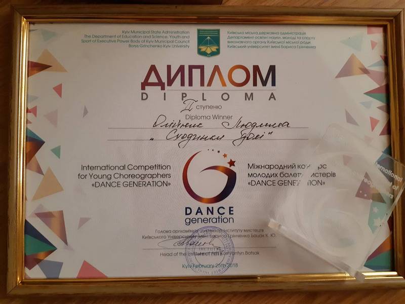 25 лютого у Києві відбувся І Міжнародний конкурс молодих балетмейстерів "DANCE GENERATION", організаторами якого виступила кафедра хореографії Інституту мистецтв Київського університету імені Бориса Грінченка. У конкурсі брали участь майбутні та молоді балетмейстери (вихованці хореографічних колективів, учні шкіл мистецтв, ліцеїсти навчальних закладів мистецького спрямування, студенти вищих навчальних закладів І-ІV рівня акредитації), молоді балетмейстери віком до 30 років.