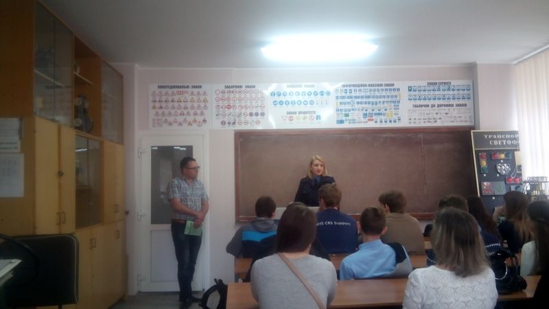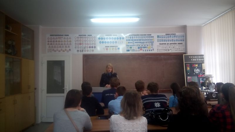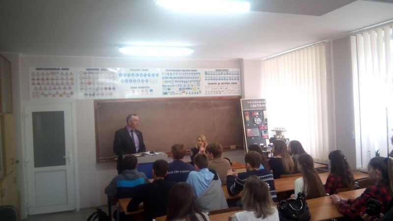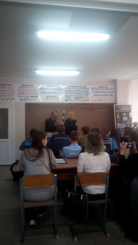 На урок «Безпека на дорозі – безпека життя» була запрошена Ганна Антоненко капітан поліції, інспектор сектору дорожньо-патрульної служби Бердянського ВП ГУНП в Запорізькій області. Під час проведення уроку розглядались права та обов’язки пішоходів, сигнали регулювальника, дорожні знаки та дорожня розмітка для пішоходів.