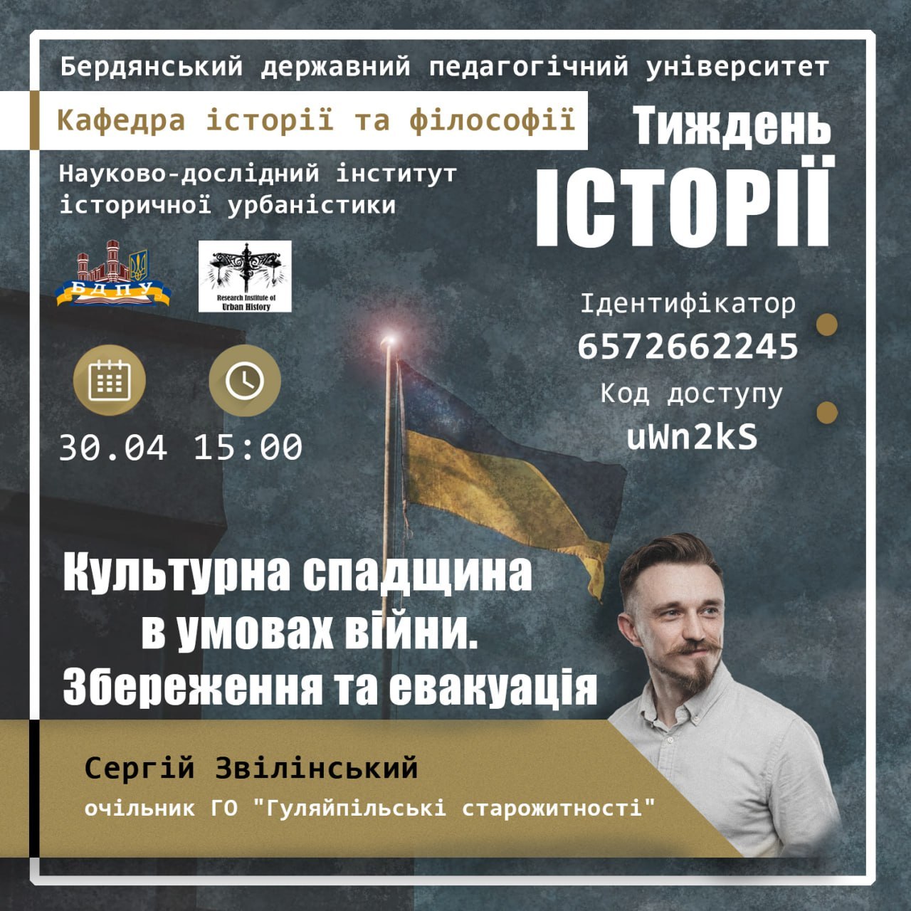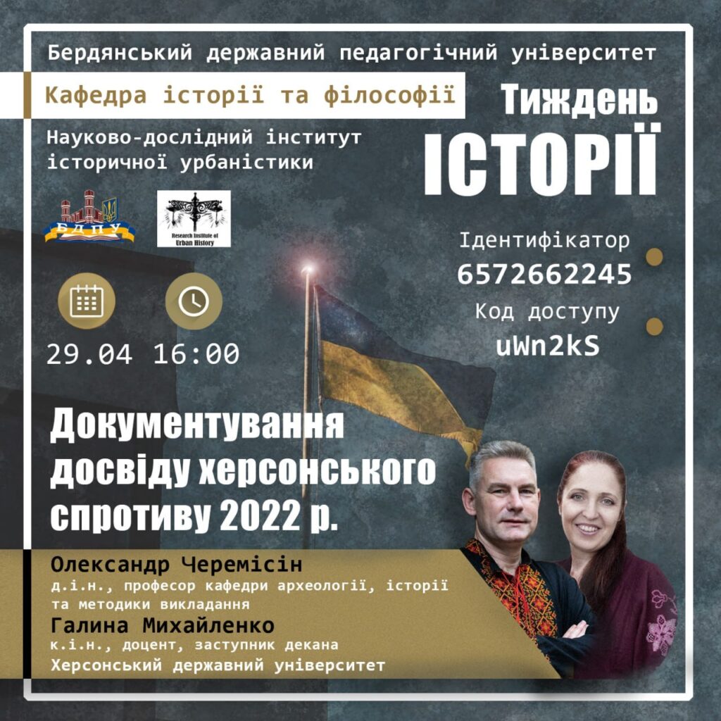 Кафедра історії та філософії БДПУ та НДІ Історичної урбаністики запрошують всіх зацікавлених приєднатися до серії відкритих зустрічей до Тижня Історії, організованих спільно з нашими партнерами – КУ імені Бориса Грінченка, ХДУ та ГО «Гуляйпільські старожитності».