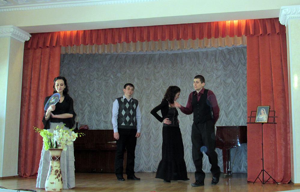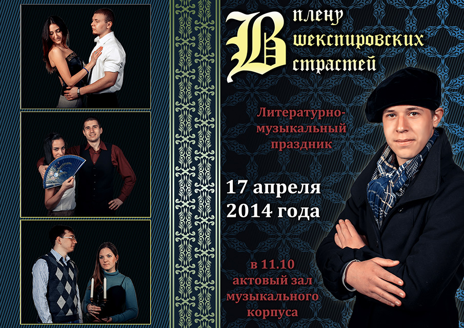 Усі бажаючі запрошувалися на літературно-музичну виставу «В плену шекспировских страстей». Розпочалося свято з монолога Шекспіра (П. Колоянов), а також пісні «Во имя всех влюбленных» у виконанні Є. Сєрих та М. Круть. Продовжили захід учні 11 школи під керівництвом вчителя англійської мови Н. П. Борисової, які декламували уривок з комедії В. Шекспіра «Сон в літню ніч». Юлія Мусенко та Микита Коваль виконали витончений танець Офелії. Кульмінаційним моментом став спектакль «Багато шуму з нічого», який поставили студенти ІФСК (О. Трюхан, Д. Кондратьєв, А. Сиващенко, А. Басараб, К. Кара, О. Наконєчний та О. Чадаєв) під керівництвом В. О. Коркішко та Г. І. Табакової. Завершився захід відеомонологом Володимира Висоцького у ролі Гамлета. А фінальним акордом стала пісня «Королі нічної Верони».