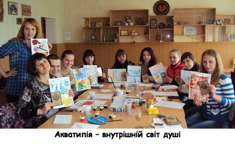 Сертифікований арт-терапевт, кандидат психологічних наук, асистент Наталя Сердюк познайомила учасників із незвичайним методом арт-терапії – акватипія. Так, за допомогою скла та фарби, учасники мали змогу отримати досвід самовираження, зняти внутрішній контроль та активізувати власний творчий потенціал.