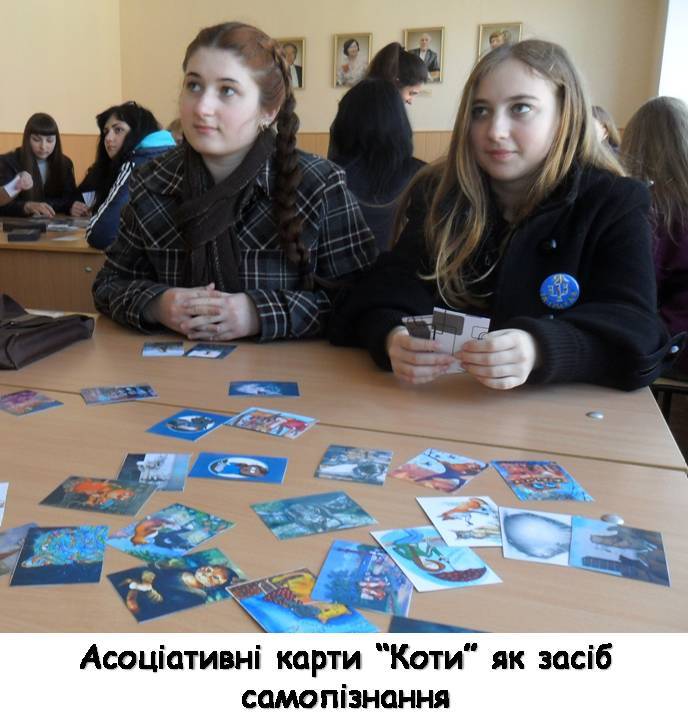 Нестандартним підходом до роботи як завжди здивувала Ольга Фролова – арт-терапевт, кандидат психологічних наук, доцент кафедри психології, яка на майстер-класі «Я реальне», «Я ідеальне» та «Я соціальне» презентувала авторську колоду асоціативних карт «Коти» та показала технологію роботи з нею для самопізнання та самовдосконалення. А трансформаційна психологічна гра «Колесо життя» надала учасникам можливість отримати комплексне бачення проблемної ситуації та знайти можливі шляхи її вирішення.