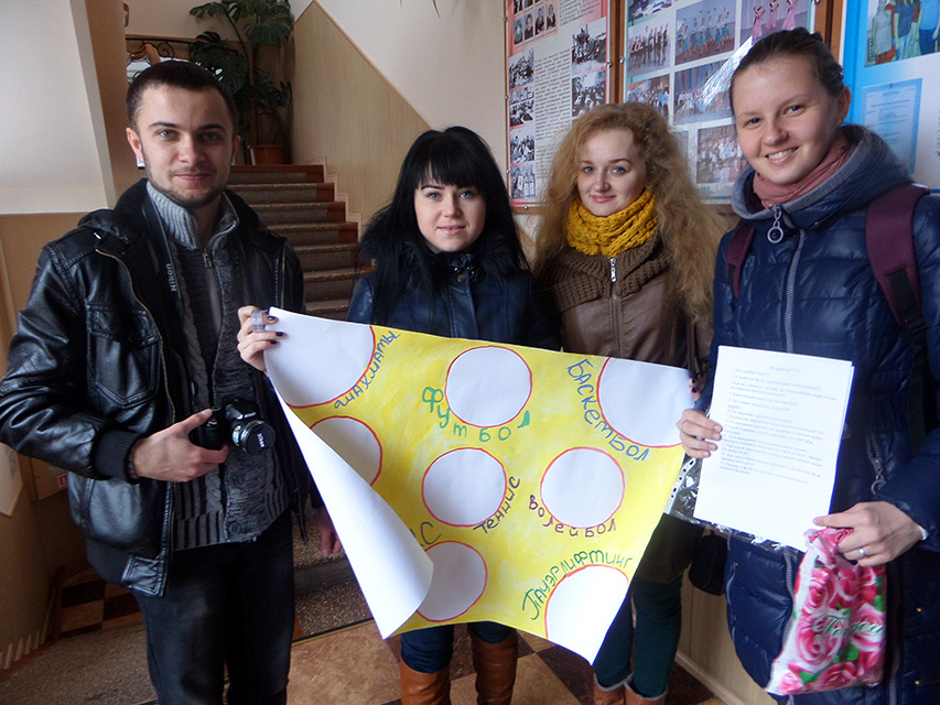 Уже другий рік поспіль у стінах Інституту психолого-педагогічної освіти та мистецтв проводиться Тиждень Студентської Ради ІППОМ, мета якого – популяризація самоврядування інституту та спеціальностей, за якими навчаються наші студенти. Саме сьогодні, 17-го березня, тижневий марафон стартував і триватиме до п`ятниці. Першими провели конкурси та соцопитування представники спортивного сектору (див світлини). Завтра – в стінах інституту «господарюватимуть» представники прес-центру, у середу – соціально-побутового, 20-го березня – академічного, у п’ятницю – творчого секторів.