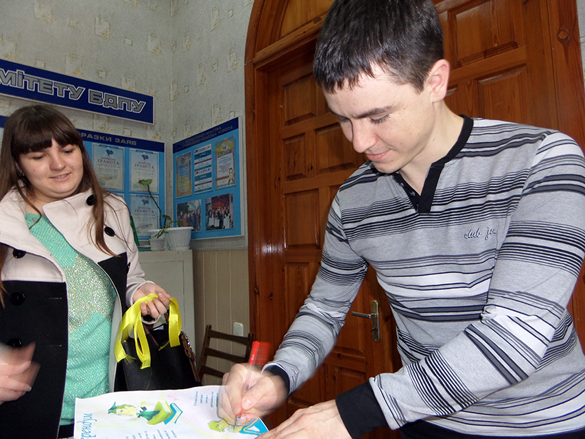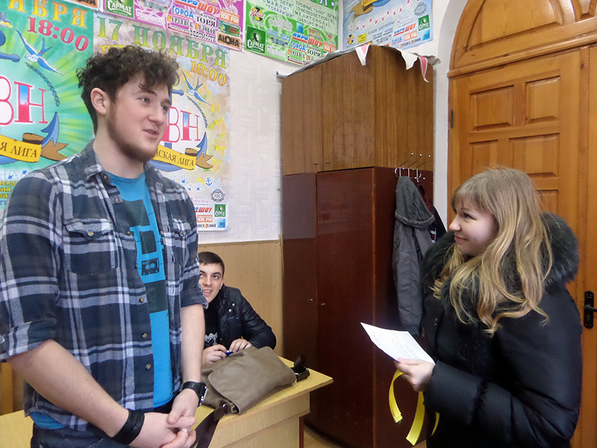 • Акція соціально-побутового сектору проводилась активно, швидко та весело, що не давало стомлюватися ні респонденту, ні інтерв'юеру. Вона відбувалася у формі соцопитування. Запитання носили розважально-інтелектуальний характер, але над кожним треба було поміркувати, продемонструвати кмітливість та ерудицію. Після опитування всім учасникам дарувались жовті стрічки – кольоровий символ інституту. Велика вдячність усім студентам та викладачам за активну участь в акції.