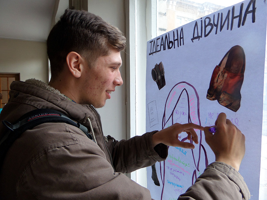 • Акція "Ідеальний портрет", як і назва, пройшла вдало. Нею зацікавилося багато студентів, а також деякі викладачі. Найбільшу увагу викликав портрет ідеального хлопця, саме цей плакат зацікавив більшість студентів. Акція пройшла весело й цікаво, були випадки, коли студенти, захопившись, повертались і брали участь кілька разів. Ми отримали задоволення від нашої акції, нам дуже сподобалось і учасникам, сподіваємось, не менше.