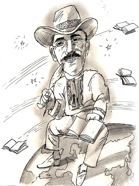 Він ходить у вишиванці, палить «Мальборо», жує ментолові цукерки (й всіх довкола пригощає), а головне – пише! Пише вірші, поеми, замітки, нариси… Це роботи зі смачнючими українськими словами та бездонною мудрістю. Він розфарбовує лавки в жовто-блакитний колір, співає державний Гімн та постійно жартує.