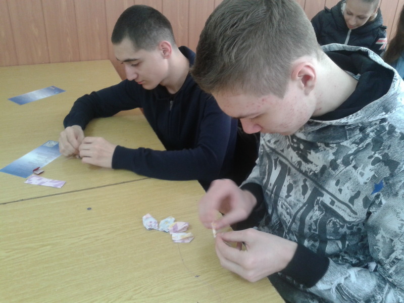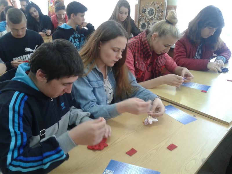 Для учнів Бердянського машинобудівного професійного ліцею цей захід провела кандидат педагогічних наук Таісія Черемісіна. Учні та їхні викладачі з великим задоволенням навчилися виготовляти власними руками прикраси з текстильних матеріалів – квіти з тканини та стрічок.