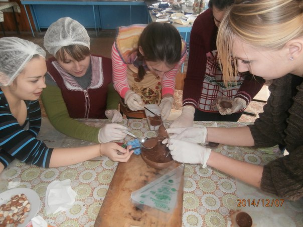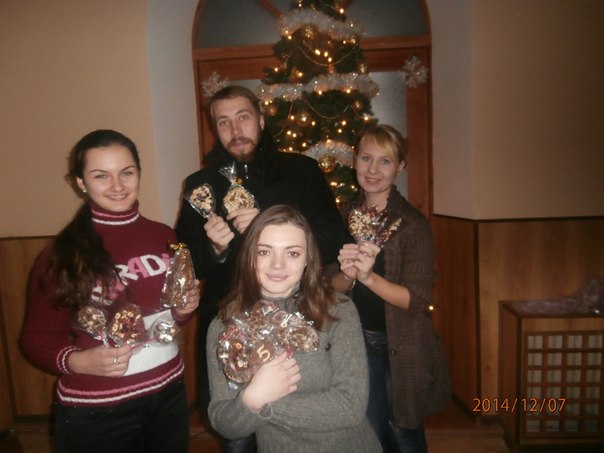Студрада нашого університету внесла свій вклад у допомогу таким дітям. Напередодні свята, зібравши кошти (в цій акції брали участь усі небайдужі студенти нашого університету), закупили вісім кілограмів шоколаду. А минулої неділі ми мали змогу потрапити в атмосферу шоколадної казки і відчули себе одним із творців цієї казки. Власноруч зробили цукерки із шоколаду і прикрасили їх на свій смак та настрій.