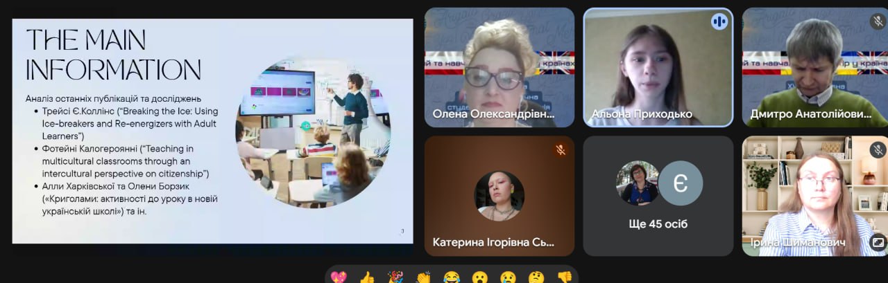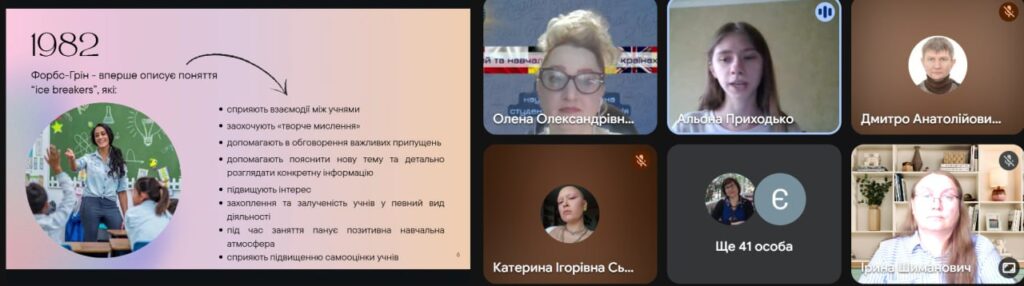 На пленарному засіданні із вітальним словом виступила доцент кафедри іноземних мов і методики викладання БДПУ, кандидат педагогічних наук Ірина Шиманович, а також із доповіддю “Ice-breakers як інструмент інтерактивного вивчення англійської мови в мультикультурних класах” — здобувачка 4 курсу ОП «Філологія (германські мови та літератури (переклад включно), перша – англійська, друга – німецька)» Альона Приходько.