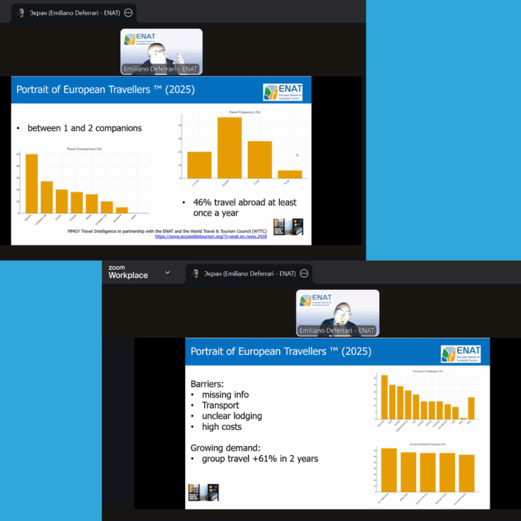 Доступний туризм виходить за рамки просто права на подорожі для всіх людей, незалежно від наявності інвалідності, будучи чудовою можливістю для дестинацій та бізнесів розширити свої ринки та зменшити сезонність. Голова Державного агентства з розвитку туризму України, пані Наталія Табака, підкреслила, що наразі лише менше 23% туристичної інфраструктури України відповідає стандартам доступності.