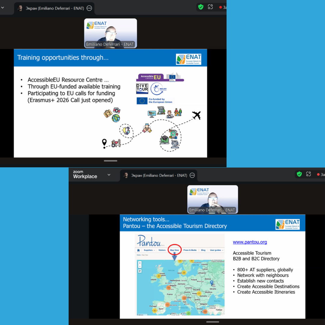• Європейської мережі доступного туризму (ENAT), яка є однією з найбільш знакових глобальних мереж у цій сфері. Було зазначено, що орієнтація на клієнтів з потребами в доступі підвищує загальну якість пропозиції.