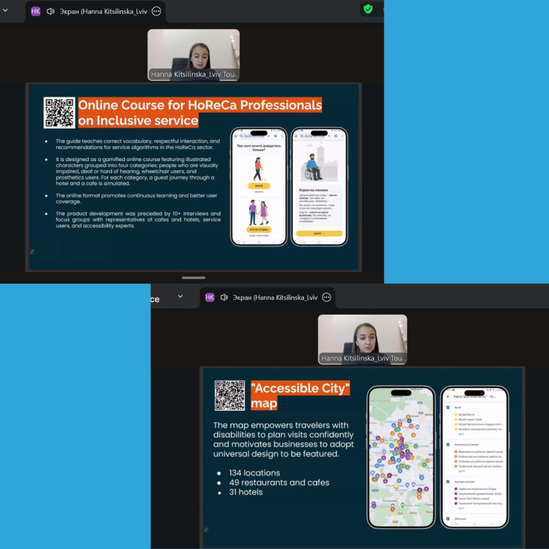 Участь у вебінарі стала важливим кроком для поглиблення знань наших викладачів та студентів у сфері інклюзивного менеджменту та туризму, що є критично важливим для підготовки висококваліфікованих фахівців, здатних впроваджувати принципи універсального дизайну та безбар’єрного простору у своїй майбутній професійній діяльності.