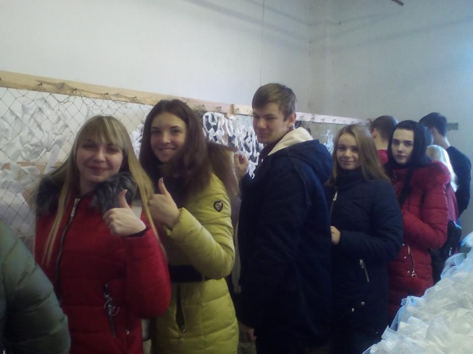 Учора також студенти гуманітарно-економічного факультету БДПУ разом із з викладачами Юрієм Федориком і Юлією Королевською приходили до нас і допомагали плести маскувальні сітки. Студентів ми познайомили з діяльністю нашої організації, а Наталія Іванченко та Любов Моїсенко навчали їх плести маскувальні сітки.