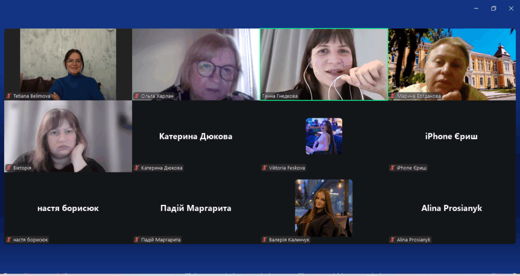2 квітня 2026 р. в Навчально-науковому інституті філології КНУ імені Тараса Шевченка відбулася онлайн-зустріч, присвячена темі «Міжнародний досвід промоції літератури». Подія об’єднала здобувачів освіти, які цікавляться літературною творчістю, перекладом і культурним менеджментом, та стала важливим етапом у розширенні їхнього професійного горизонту. Учасниками заходу стали декан соціально-гуманітарного факультету Марина Богданова, завідувач кафедри української та зарубіжної літератури і порівняльного літературознавства, гарант ОПП «Філологія» Ольга Харлан, гарант ОНП «Літературно-мистецький менеджмент» Ганна Табакова, студент соціально-гуманітарного факультету.