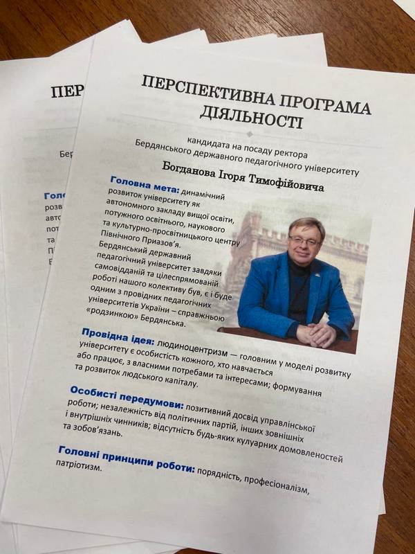 У середу, 22 вересня, відбулася знакова подія. Колектив Бердянського державного педагогічного університету проголосував за очільника закладу освіти на найближчі п’ять років. Ці вибори відзначилися рекордною явкою педагогічних, науково-педагогічних працівників, здобувачів вищої освіти і співробітників університету та найвищим відсотком довіри – майже 96 % виборців віддали свої голоси за професора Ігоря Богданова.