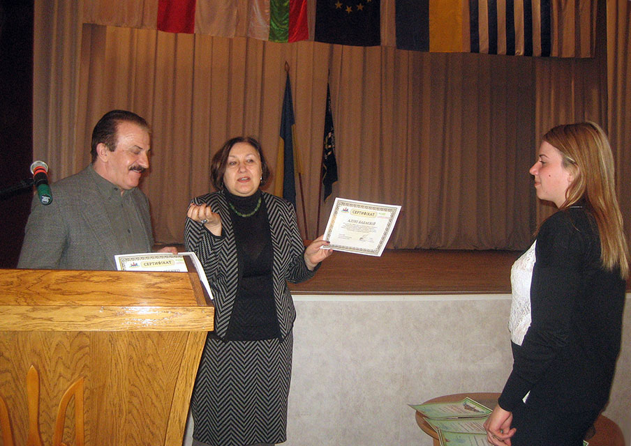 Степан Герилів – головний редактор газети БДПУ «Університетське Слово», як регіональний директор американського Фонду імені К. Ковшевич, проінформував присутніх про діяльність та здобутки представництва Фонду в нашому регіоні та в Бердянську, зокрема, разом із ректором університету Вікторією Зарвою вручив відповідні Сертифікати на право отримання стипендій 8-и студенткам Інституту соціально-педагогічної та корекційної освіти, факультету економіки та управління. Директор ІСПКО Лариса Казанцева передала Степану Миколайовичу для засновниці Фонду п. Христині Ковшевич-Дурбак Подячного листа за останній жест її добросердя , коли з Фонду виділено кошти для семи студенток інституту, які із зони АТО знайшли прилисток у нашому університеті, проживають у гуртожитку, добре вчаться…