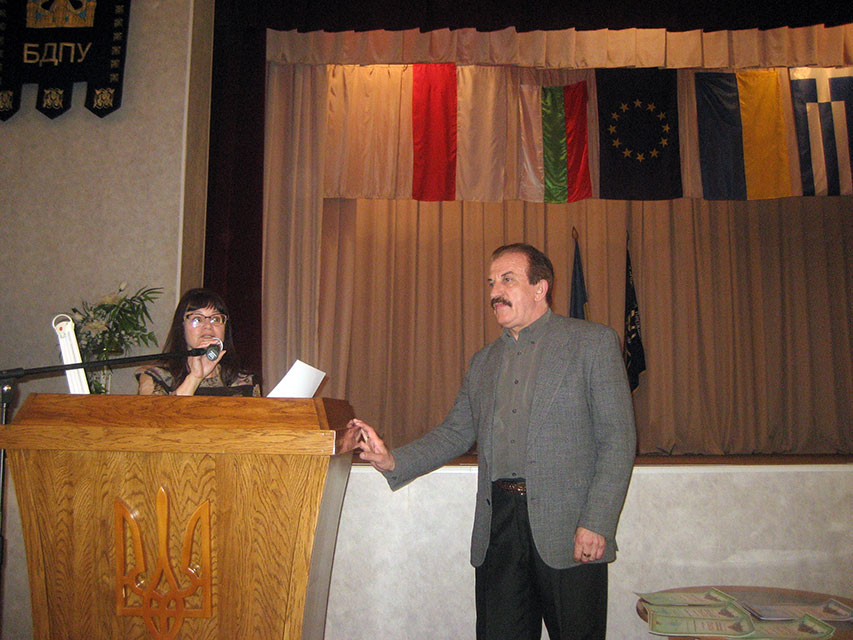 Як і годиться, з вітальним словом спочатку виступила ректор університету, професор Вікторія Зарва, відзначивши вагомий внесок науковців-міжнародників у здобутки рідного вишу, а координатора міжнародної діяльності БДПУ, професора Ігоря Лимана справедливо «охрестила» потужним акумулятором усіх міжнародних університетських надбань. А Ігор Ігорович уже згодом на фактах доводив, що ректор мала цілковиту рацію. Ігор Лиман наголосив, що поєднання щорічної презентації міжнародної діяльності БДПУ із відзначенням Дня Європи цього року є особливо символічним. Для БДПУ міжнародне співробітництво, і перш за все, співробітництво із європейськими колегами, є стратегічним напрямком, спрямованим на інтегрування в світовий освітній простір.