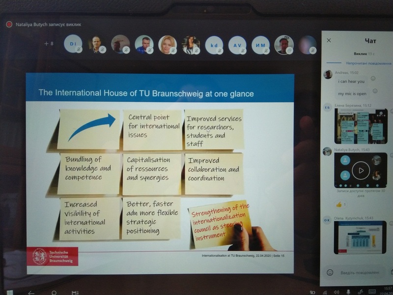 На цьому ж тижні доктор Біргіт Барден-Лефер (Dr. Birgit Barden-Läufer) директорка міжнародного офісу Ганноверського університету, і доктор Андреас Хеттігер (Dr. Andreas Hettiger), заступник директора Міжнародного дому Технічного університету Брауншвейга (TU Brunswick) ділились своїм досвідом щодо вирішення завдань з управління, розвитку та підтримки інтернаціоналізації.