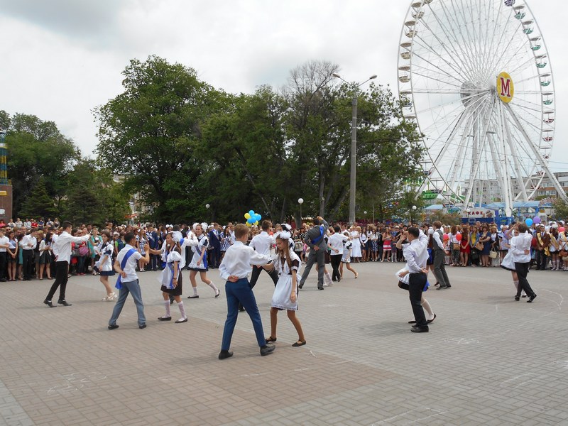Цьогорічне закінчення школи випускники освітніх закладів Бердянська вирішили відзначити оригінально – вальсом на Приморській площі.