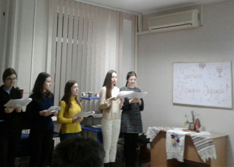 14 лютого у Болгарії відзначають три свята: церковне – Успіння Святого Кирила Слов’яноболгарського, свято Святого Трифона Зарезана, яке ще називають Днем виноградаря, і свято Святого Валентина. У центрі болгаристики Бердянського державного педагогічного університету з нагоди цих знаменних подій відбулася низка заходів з розповідями про історію кожного свята та болгарські традиції. На урочистостях були присутні студенти-болгаристи та викладачі з Республіки Болгарії.