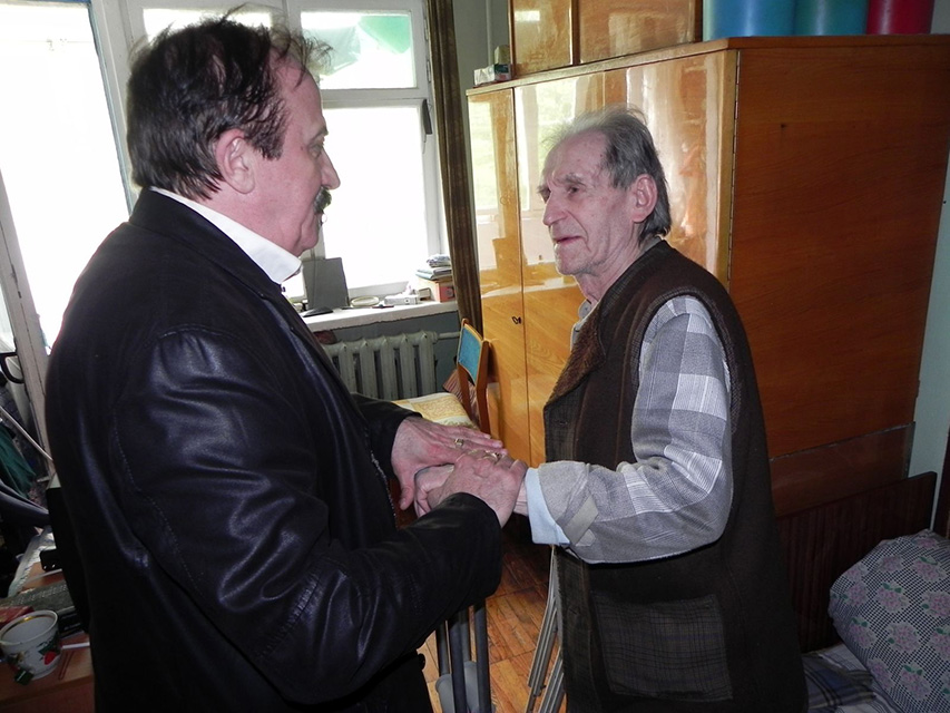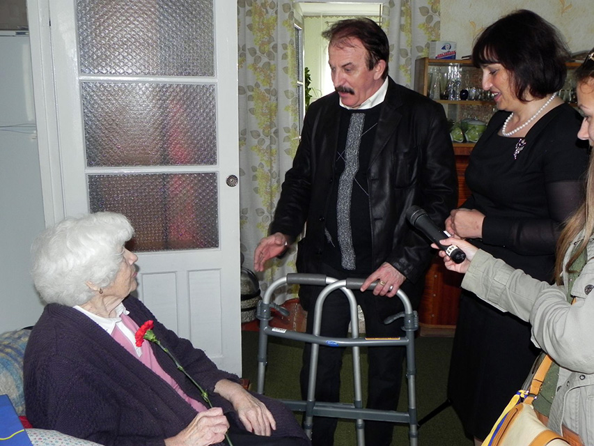 Напередодні свята Великої Перемоги заступник міського голови Людмили Шаповал та редактор газети БДПУ «Університетське Слово», ініціатор створення в університеті Благодійної Скрині «ДоброДій» Степан Герилів відвідали бердянців, котрі значною мірою причетні до визволення України від німецько-фашистських загарбників: Олексія Кадигрова, Павла Саламанюка та Фаїну Базилевич. Від міського голови ветерани отримали щирі слова привітань та цінні подарунки, а з університетської Скрині – інвалідний візок, милиці та ходунки (див. світлини), надіслані парафіянами церкви св. Івана Хрестителя, що понад сто років існує в далекому американському місті Нюарку. Ветерани щиро дякували гостям за увагу, турботу та піклування.