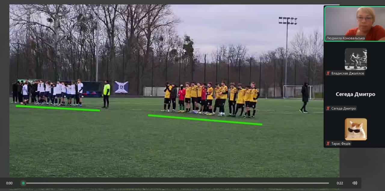 Здобувачі вищої освіти були активно залучені до обговорення, аналізували ігрові епізоди, ставили запитання та пропонували власні тактичні рішення. Такий формат навчання сприяє розвитку професійного мислення, аналітичних умінь і формуванню практично орієнтованої підготовки майбутніх фахівців у сфері фізичної культури і спорту.