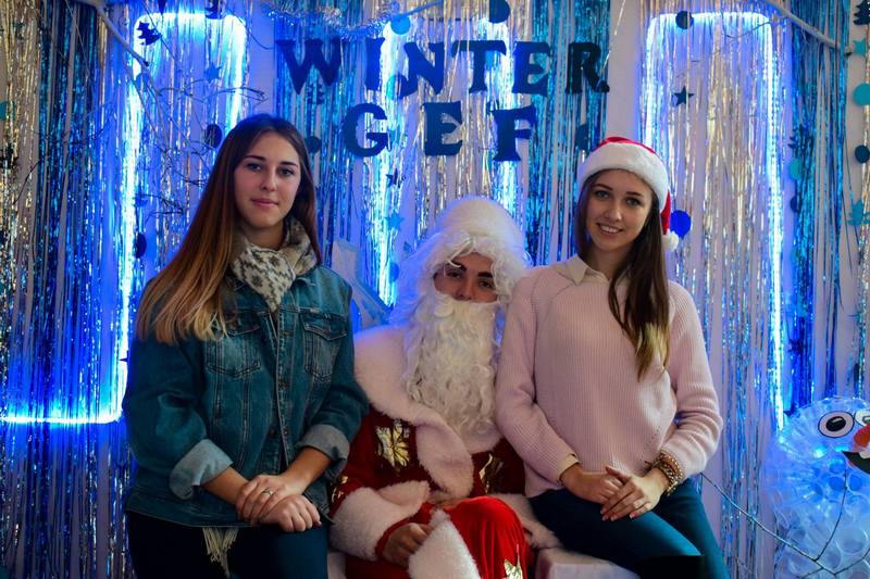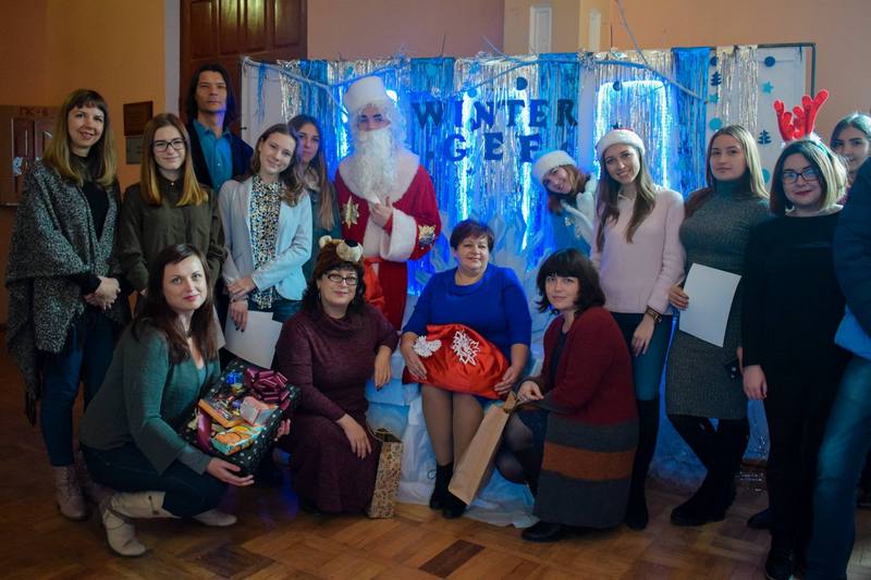 У ролі Діда Мороза – голова студради факультету Олексій Черемісін, Снігуронькою була неперевершена Юля Капустєнко. Всіх із святами вітали декан факультету доцент Тамара Макаренко, професор Ігор Лиман. Подяки та грамоти вручили успішним та активним студентам. І, звичайно, солодощі із новорічної торбинки Діда Мороза.