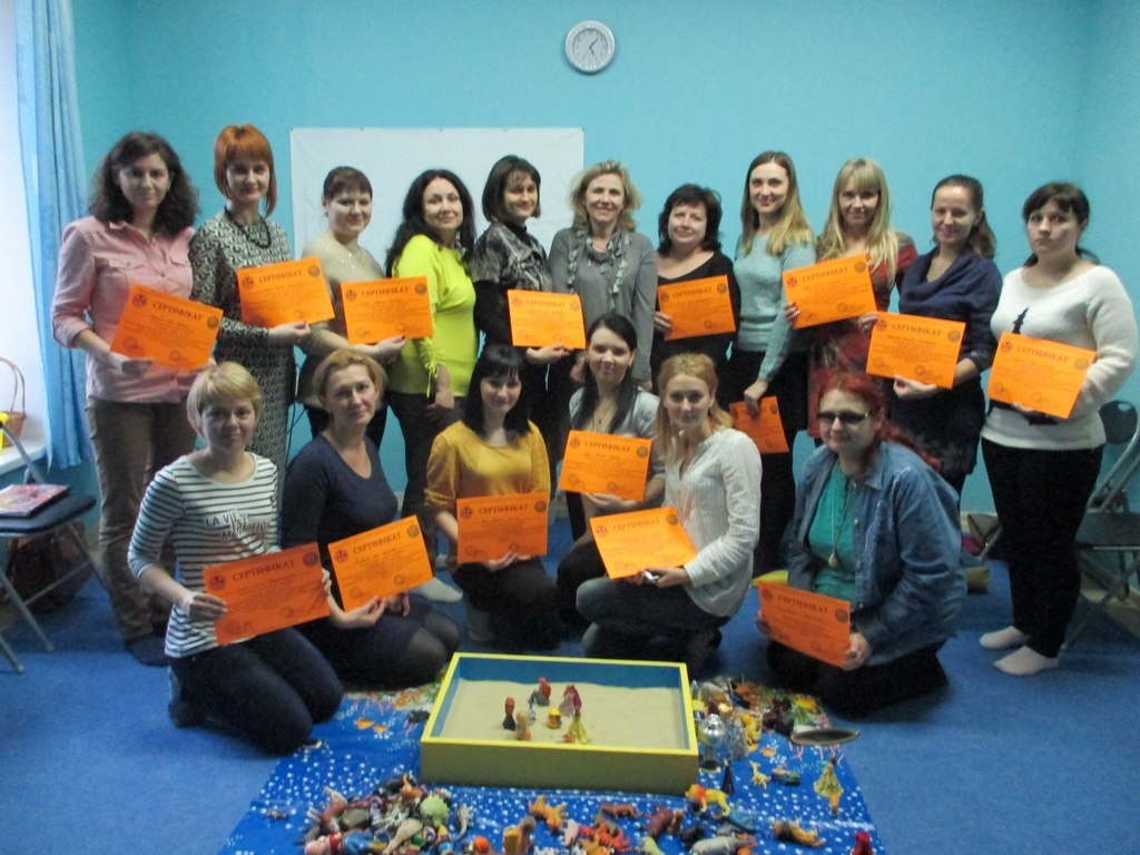Учасники іншої тренінгової групи протягом двох днів пройшли третій та четвертий модулі навчальної програми з арт-терапії за спеціалізацією «Піскова терапія». Теоретична частина передбачала вивчення існуючих субособистостей людини та теорій розвитку дитини через призму її стосунків з матір’ю. Отриманий методологічний матеріал був опрацьований на практиці й обов’язково стане у нагоді кожному члену навчальної групи. Всі учасники, серед яких були не тільки викладачі, а й студенти молодших курсів, переконалися на власному досвіді, наскільки Sand-play (гра з піском) є ефективним методом роботи з глибинними переживаннями, емоціями, цілепокладанням та усвідомленням мотивів власної поведінки.