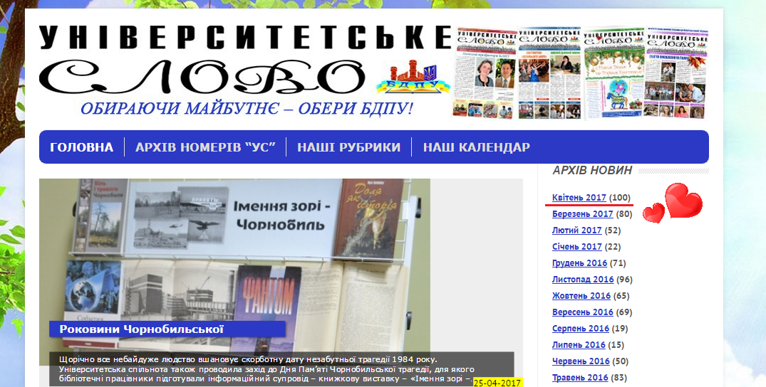 Дякуємо вам, наші дописувачі, за кожне слово, опубліковане на сайті, за кожну світлину, які пишуть сьогоднішню цікаву історію життя рідного БДПУ!