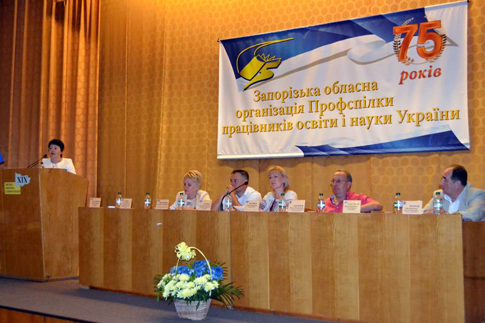 Минулого вівторка, 9 червня, в Запоріжжі відбулась ХІХ звітно-виборна конференція обласної організації Профспілки працівників освіти і науки України, в якій брали участь ректор БДПУ, професор Вікторія Зарва, голова профкому університету, доцент Віталій Лола та два його заступники – доцент Ольга Попова та студентка 3 курсу, стипендіат президента України Юлія Хаматгораєва.