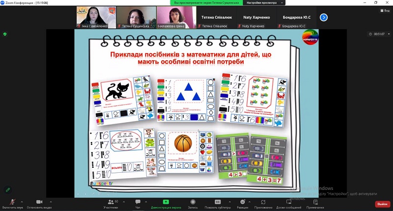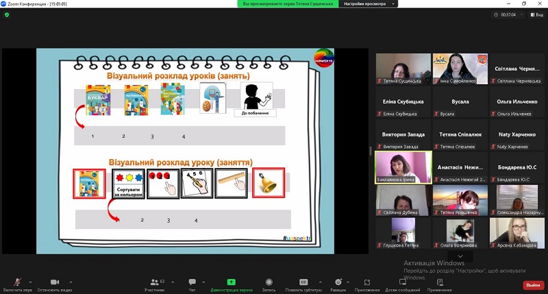 Пані Ірина представила практичні приклади та стратегії для роботи з дітьми з особливими освітніми потребами, зокрема особливості використання засобів візуальної підтримки; поділилася власним досвідом створення посібників та матеріалів для цієї категорії дітей.
