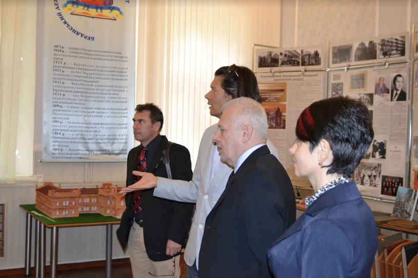 Крім того, італійські гості ознайомилися з діяльністю окремих структурних підрозділів нашого університету – факультетом фізичного виховання, факультетом психолого-педагогічної освіти та мистецтв, гуманітарно-економічним факультетом та Компетентнісним центром інклюзивної освіти БДПУ, завітали на концерт народного ансамблю народної пісні «Золотий гомін» з нагоди їх 5-річного ювілею та 80-річчя факультету філології та соціальних комунікацій, відвідали музей історії БДПУ тощо.