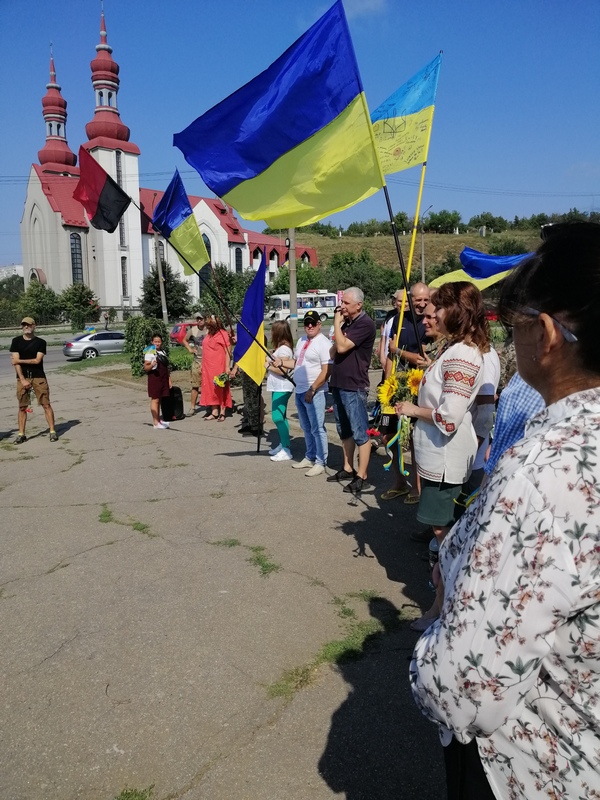 У День 30-літньго ювілею відродження рідної Вітчизни, по-своєму вирішили відзначити це свято свідомо-патріотичні бердянці. О 10-й годині ранку, зустрілися біля пам’ятника загиблим воїнам в російсько-українській війні. Щоби згадати полеглих у війні з московським окупантом, разом із отцем Святославом помолитися за спокій їхніх душ, згадати окремі моменти з історії України, промовити добре слово на адресу нинішніх захисників України… Промовці – перша заступниця голови райдержадміністрації Ірина Півень, ветерани та інваліди теперішньої війни, гості Бердянська, а також співзасновники ГО «НАШІ АТЛАНТИ» Анетта Омельченко та Степан Герилів – у першу чергу, дякували тим, хто нині на лінії фронту боронить святість рідної землі, вітали рідну неньку та бердянців із ювілеєм…