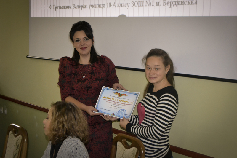 Подяки за активну участь отримали учні Андріївської спеціалізованої різнопрофільної школи Бердянського району, загальноосвітніх шкіл №№ 1, 3, 4, 5, 7, 9, 11, 13, 16, 20, гімназій №2 і № 3 м. Бердянська, спеціальні грамоти у чотирьох номінаціях «Мрії та побажання», «Креативні перлинки», «Малюнок у подарунок», «Симпатії студентської аудиторії» були вручені п’ятнадцятьом учням, а дипломами призерів конкурсу нагороджені: Крот Данило, учень 9 класу гімназії №2 м. Бердянська, Шевченко Ілля, учень 11 класу загальноосвітньої школи №4 м. Бердянська, Бойко Артем, учень 10 класу Андріївської різнопрофільної школи Бердянського району.