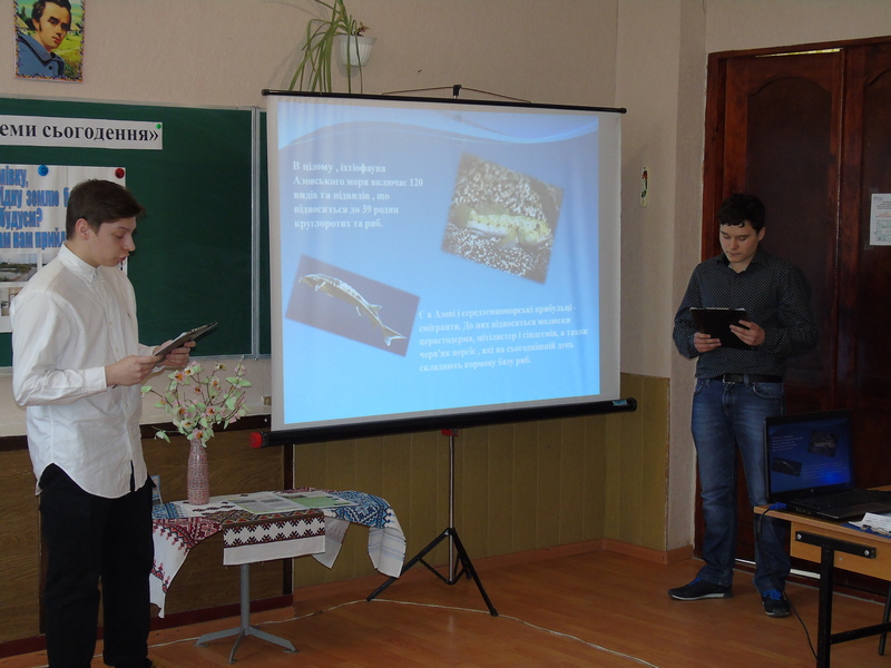 Учні доповідали про екологічний стан Азовського моря, яке сьогодні потерпає від антропогенної діяльності, та представляли власні проекти екологічних досліджень: