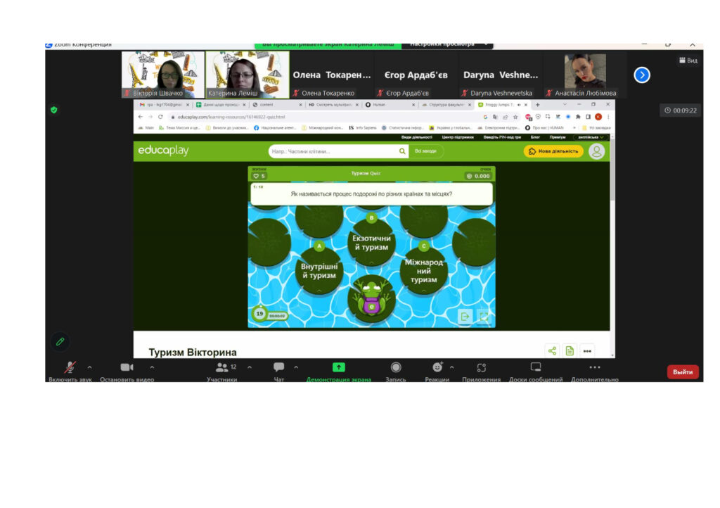 А під час традиційної кураторської години 27.09.2023 р. здобувачі ОП «Менеджмент готельного, курортного та туристичного сервісу» та ОП «Менеджмент» взяли участь у традиційній тематичній вікторині, яку підготували викладачі нашої кафедри. Здобувачі відповідали на запитання та розв’язували завдання, згенеровані за допомогою конструктора інтерактивних завдань Educaplay.