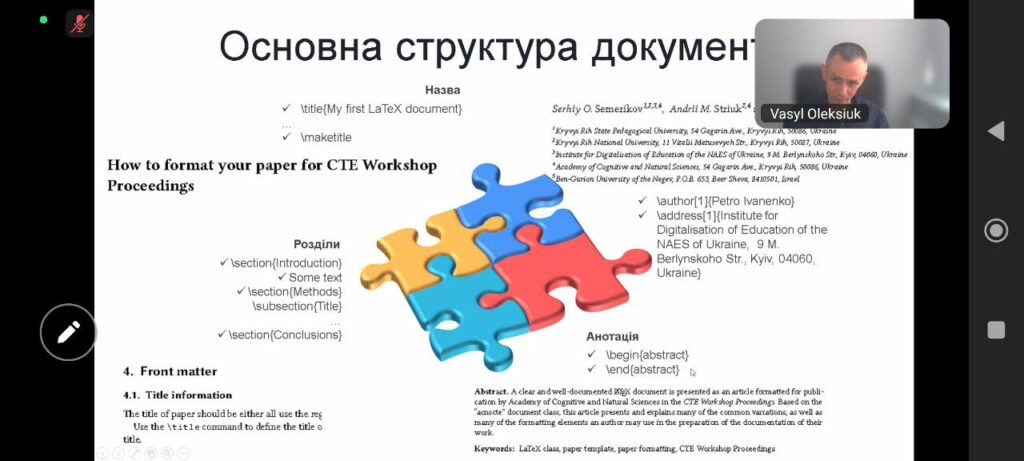 У межах програми слухачі ознайомилися з низкою актуальних тем, важливих для сучасного науковця. Під час навчання учасники курсу дізналися, як ефективно застосовувати штучний інтелект для пошуку та аналізу наукових джерел, структурування даних, оформлення наукових текстів у LaTeX, а також для підготовки публікацій і рецензій у відповідності до міжнародних академічних стандартів. Особливу увагу було приділено питанням академічної доброчесності, зокрема етичним аспектам використання ШІ у процесі підготовки та публікації наукових результатів.