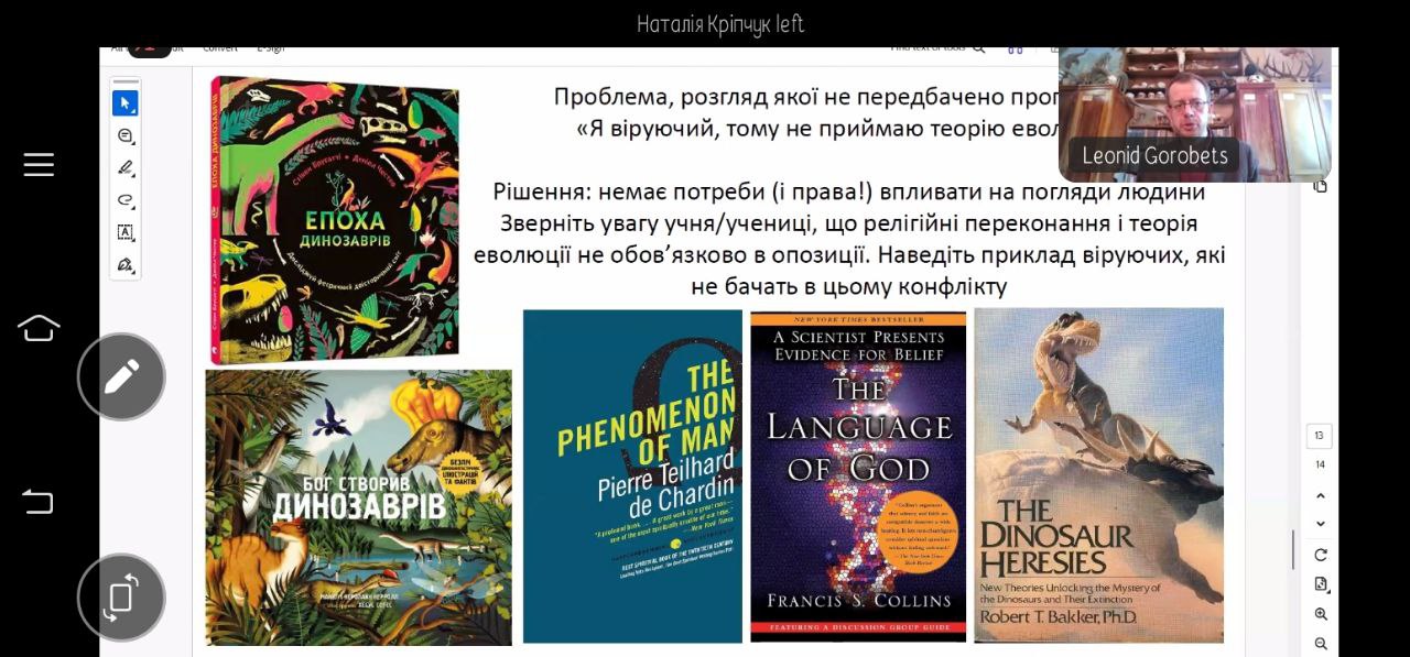 10 березня 2026 року доктор біологічних наук Леонід Горобець та кандидат технічних наук Іван Мердух провели зустріч, присвячену можливостям використання підручника «Біологія. 9 клас» (автори Л.В. Горобець, І.В.Кравець, Г.П.Лойош, О.Б.Абрат, І.І.Мердух). Автори обговорили методичні підходи до пояснення еволюційних процесів та поділилися практичними ідеями для організації пізнавальної діяльності учнів.