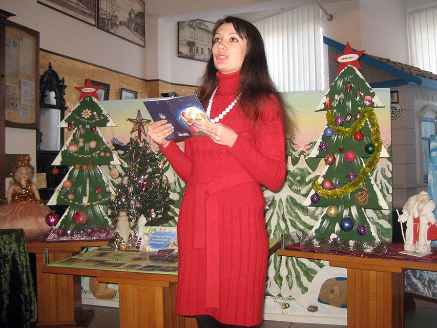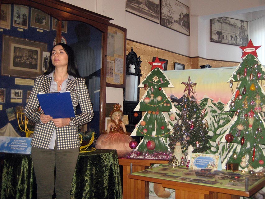 Сьогодні в Бердянському краєзнавчому музеї пройшло відкриття виставки «Ялинкові прикраси та новорічні листівки 30-80-х років минулого сторіччя», яку урочисто відкрила його директор Людмила Ноздріна.
