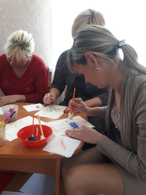 Вчити помічати і сприймати прекрасне у навколишньому, формувати інтерес до образотворчої діяльності, розвивати творчі здібності дошкільників у нетрадиційних техніках малювання – це лише деякі з питань, які було розглянуто на методичному об’єднанні вихователів груп дітей середнього дошкільного віку закладів дошкільної освіти Бердянська, яке відбулося в ЗДО № 34 «Оленка». Методичне об’єднання «Формування творчої особистості засобами художньої діяльності» розпочалося з міні-лекції доцента кафедри дошкільної освіти БДПУ Тетяни Єськової, в якій було зазначено, що нетрадиційні техніки малювання відкривають широкі можливості для розвитку уяви як елементу творчих здібностей дошкільників, акцентовано увагу вихователів на особливостях методики навчання нетрадиційним образотворчим технікам дітей середнього дошкільного віку та запропоновано цікаву презентацію з цієї проблеми. Слухачі також мали можливість втілити свої теоретичні знання в практичній діяльності і, використовуючи різноманітні нетрадиційні техніки малювання, створити цікаві художні роботи.
