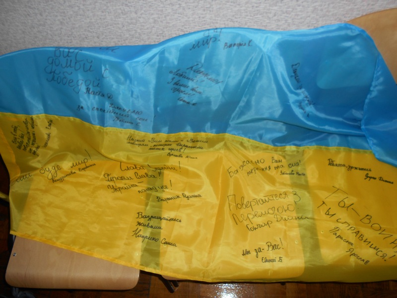 Активно долучившись до обласних благодійних патріотичних акцій «Прапор для бійця» та «Подарунок для Героя», школярі вручили сьогодні «нашоатлантівцям» для передачі солдатам на фронт і прапори, і десятки власноруч виготовлених аплікацій та листівок, і солодощі тощо…