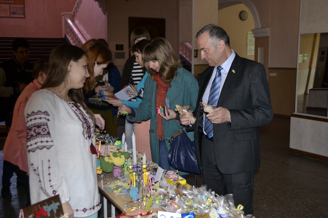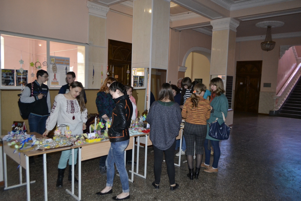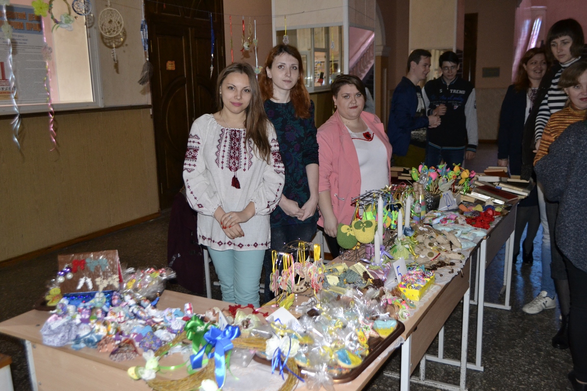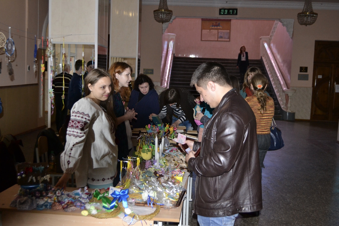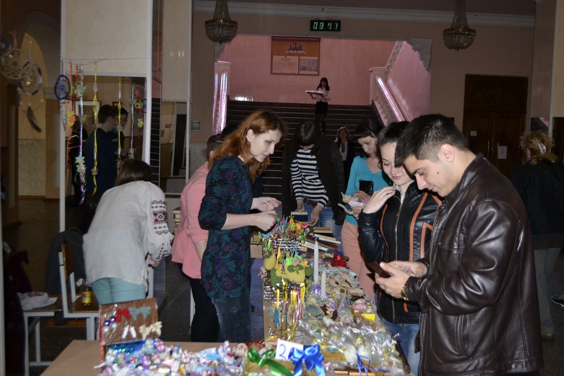 Щойно в фойє головного корпусу розпочався V Благодійний ярмарок, організований студентами соціально-гуманітарного факультету спільно з деканатом і кафедрою історії України (див. світлини). Зібрані кошти підуть на потреби військового шпиталю та воїнів із зони АТО. Ярмарок триватиме до 14-ї години.