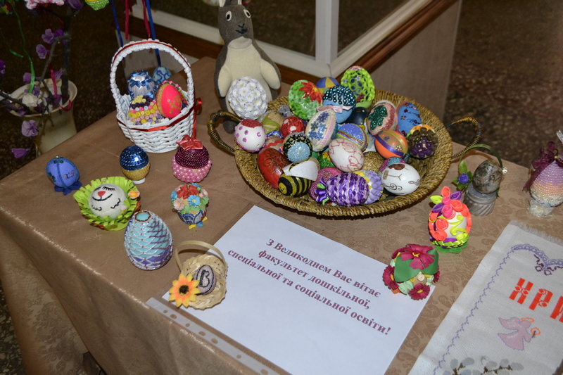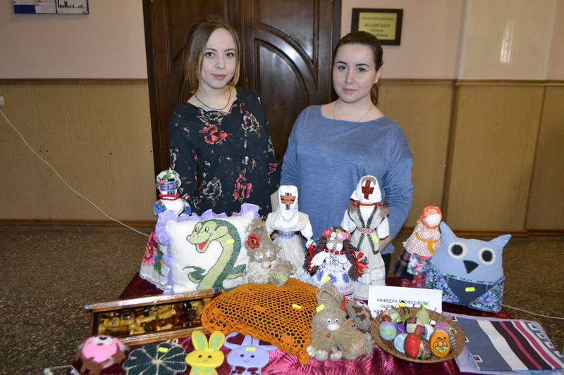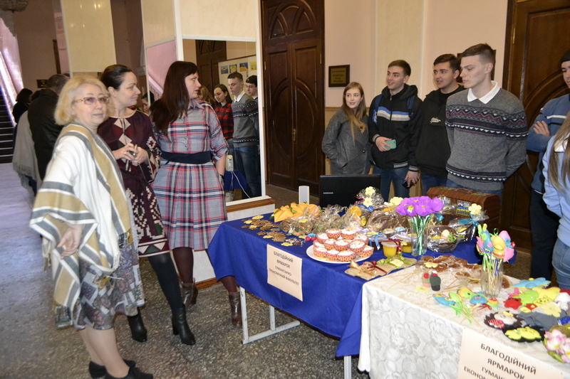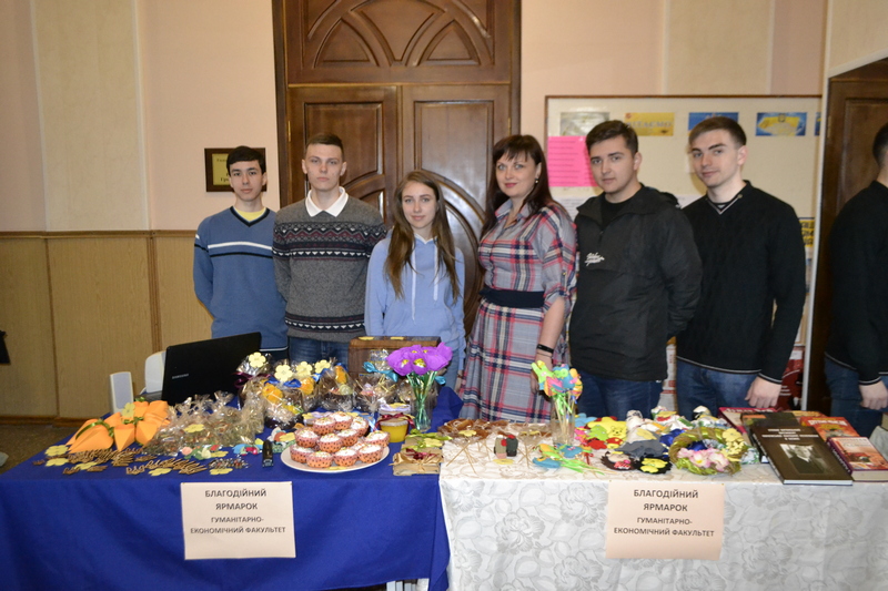 Студенти та викладачі гуманітарно-економічного факультету 5 квітня ц. р. влаштували в фойє головного корпусу БДПУ Великодній благодійний ярмарок. За підтримки деканату гуманітарно-економічного факультету та кафедри історії та філософії для відвідувачів було представлено широкий асортимент виробів «хендмейд»: чудові великодні подарункові набори, цукерки-морквинки, льодяники та інші смаколики, виготовлені майстринями факультету. Окремо варто наголосити на традиційному наповненні ярмарку – патріотичних виробах – авторські ляльки-мотанки, тризуби, вироби з гільз тощо. За результатами натхненної торгівлі було зібрано 1788 грн.