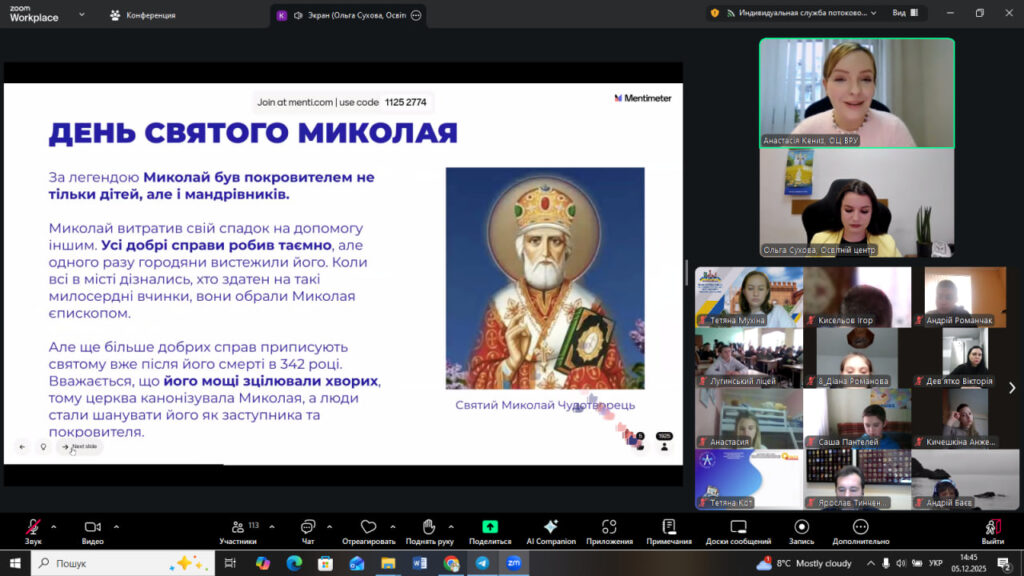 Напередодні двох значущих для України свят – Дня Святого Миколая та Дня Збройних Сил України – викладачі та здобувачі вищої освіти факультету психолого-педагогічної освіти та мистецтв БДПУ долучилися до Всеукраїнського онлайн-заходу, організованого Освітнім центром Верховної Ради України спільно з Національним військово-історичним музеєм України.