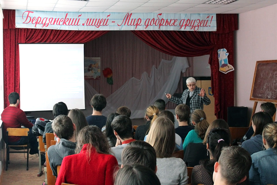Гості розповіли старшокласникам про розкопки археологічної експедиції в Бердянському районі. Зазначимо, що в цих розкопках брали участь викладачі (В. Дімітров, Ф. Каїра) та ліцеїсти БКМ.