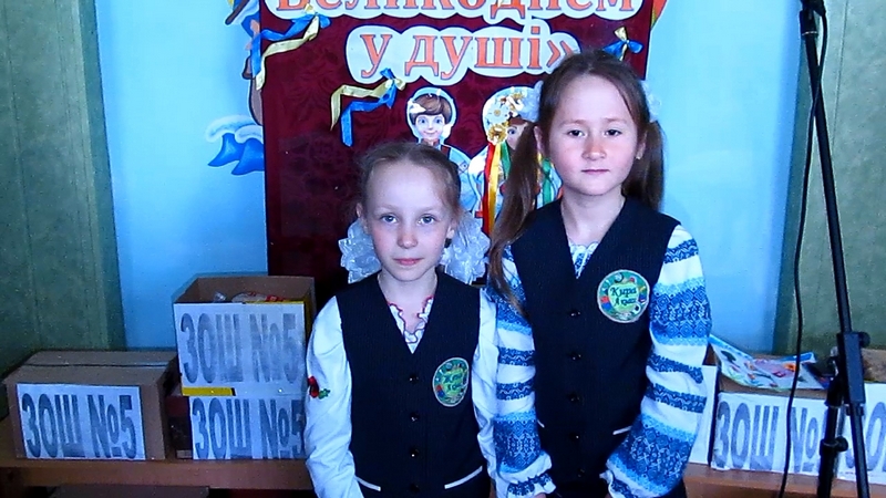 Учора, 21 квітня», університетських волонтерів Степана Гериліва та Наталію Іванченко-Фуклєву запросили й до Бердянської ЗОШ №5 на благодійний ярмарок і щоби в урочистій обстановці вручити для воїнів-захисників й свої подарунки (див. світлини). Разом із «пасхальними коробками» маленькі школярики просили волонтерів передавати солдатам вдячність за мирне небо над Бердянськом, а ті, в свою чергу, дякували учням та їх наставникам за небайдужість і постійне піклування про воїнів у окопах, висловлювали гордість за таких підростаючих патріотів…