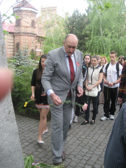 …А через три години представники університетського колективу взяли участь в загальноміському мітингу-реквіємі, присвяченому Дню перемоги над нацизмом, поклали квіти до пам'ятника морякам-десантникам.