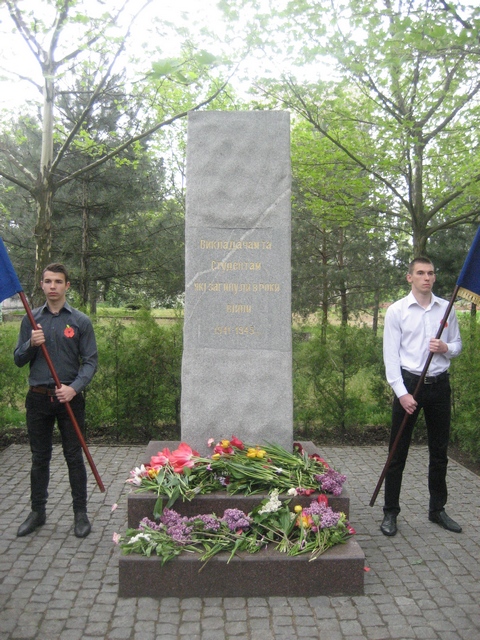 … А сьогодні об 11-ій пройшов мітинг-реквієм біля обеліска викладачам і студентам університету, загиблим у минулій віні, в якому взяли участь керівники університету, студенти, викладачі, ветерани та учасники минулої та теперішньої воєн…
